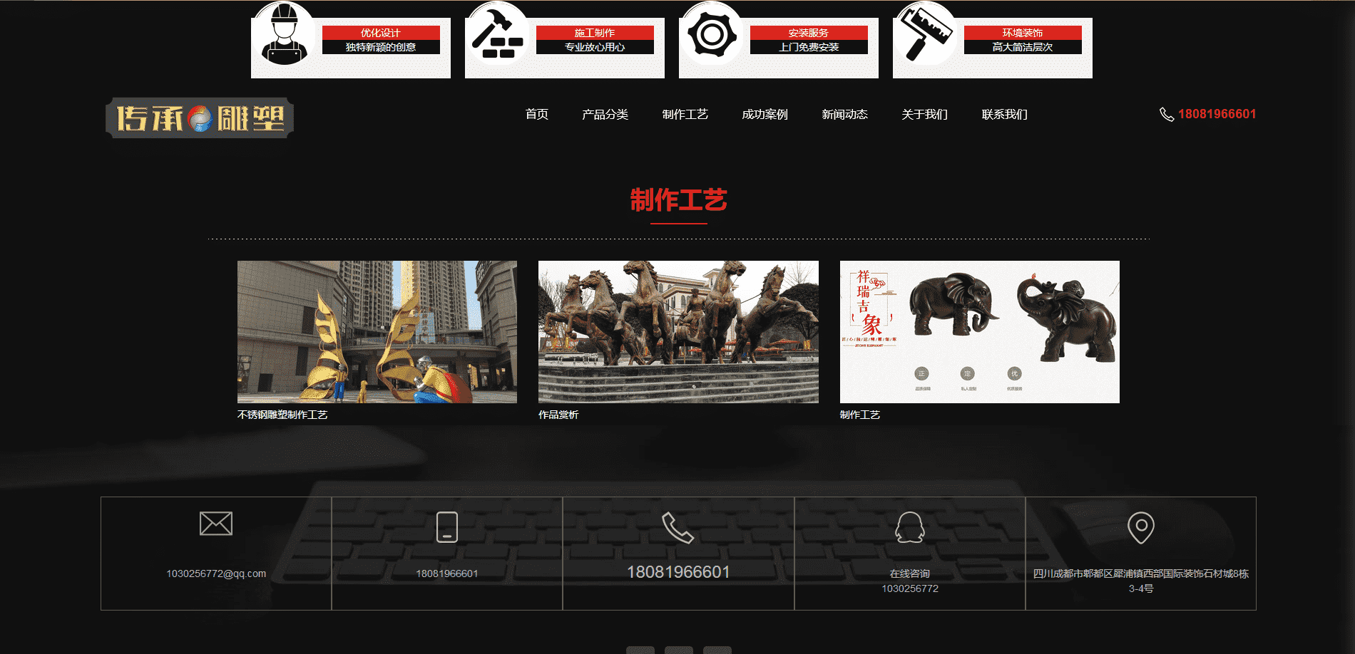 四川传承环境雕塑有限公司,是一家集新产品的开发,设计,制作,安装一体化服务,我们主要从事:四川雕塑、四川玻璃钢雕塑、四川假山景观、四川抽象造型雕塑、四川校园雕塑、四川不锈钢雕塑、酒店雕塑、会所、娱乐城、酒吧、水疗城、企业场所等标志雕塑主题雕塑加工。产品类型有锻铜雕塑、铸铜雕塑、不锈钢雕塑、砂岩雕塑、玻璃钢雕塑、石材雕塑、水泥雕塑、工艺品雕塑、假山假树环境艺术雕塑等。